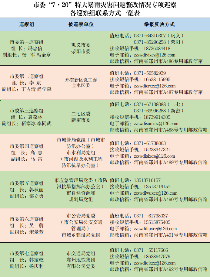 郑州市委“7·20”特大暴雨灾害问题整改情况专项巡察进驻14家单位,公布举报方式