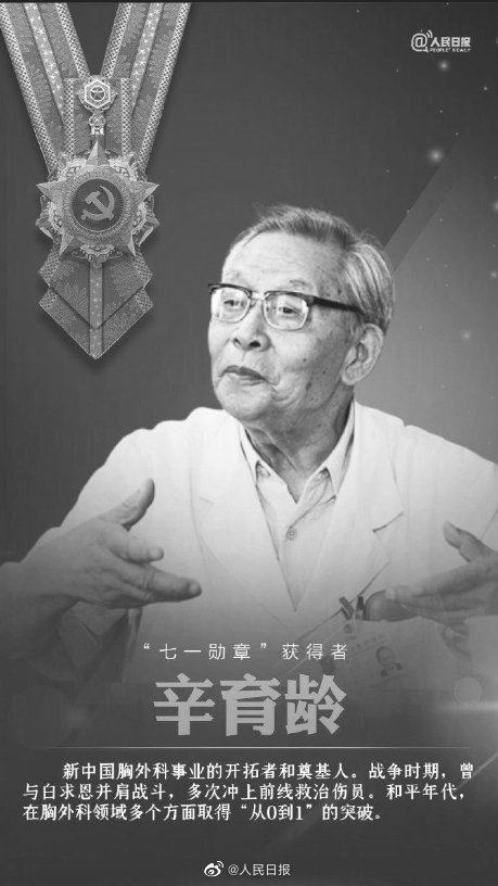 记者今天从中日友好医院了解到:中国共产党的优秀党员,“七一勋章”获得者,新中国胸外科事业的开拓者和奠基人,中日友好医院首任院长、教授、博士生导师辛育龄同志,因病医治无效,于2022年6月7日22时54分在北京逝世,享年101岁。