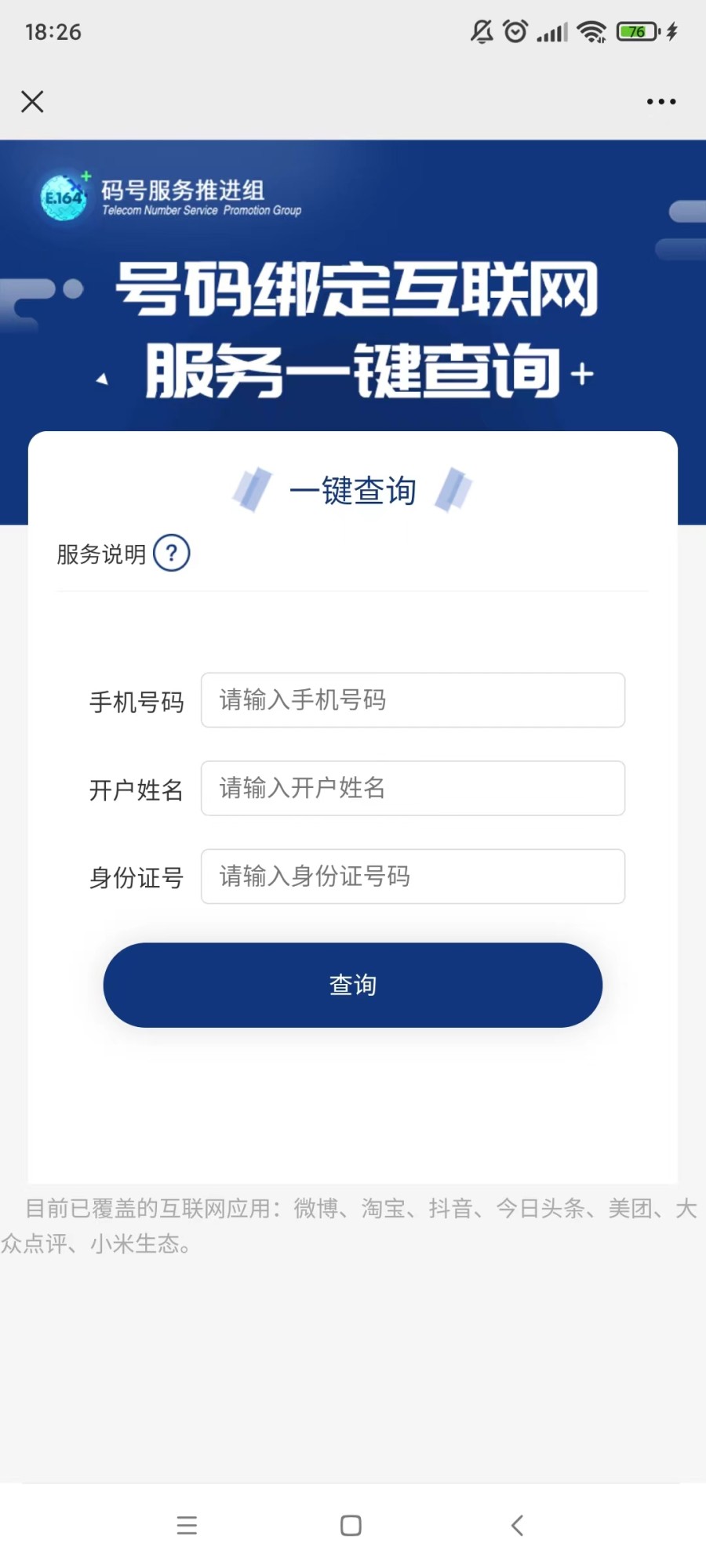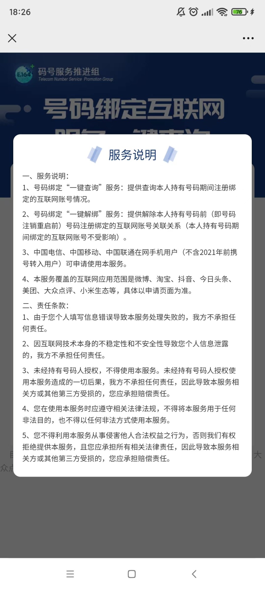 声明还特别指出,中国电信、中国移动、中国联通在网手机用户(不含2021年前携号转入用户)可申请使用本服务。本服务覆盖的互联应用范围是微博、淘宝、抖音、今日头条、美团、大众点评、小米生态等,具体以申请页面为准。