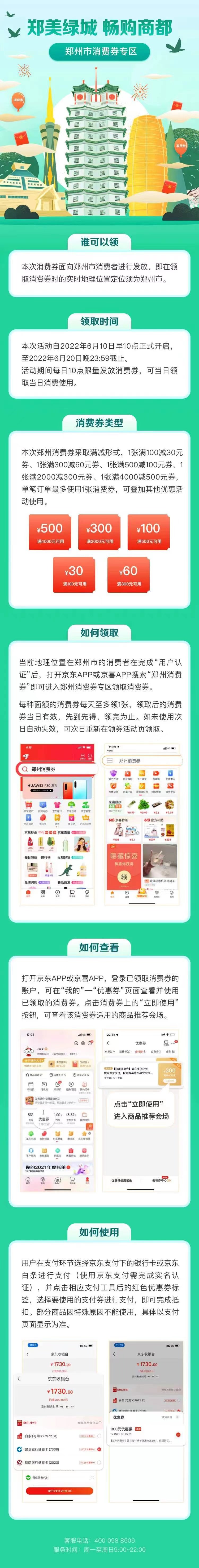 6月10日上午10时至6月20日上午10时,首批电商消费券2500万元将通过京东平台发放,届时在郑州市域内(含开发区、区县市)的消费者均可在京东APP、京喜APP通过点击首页顶部“郑州消费券”图标,或搜索“郑州消费券”进入领券专区领取,数量有限,先到先得。