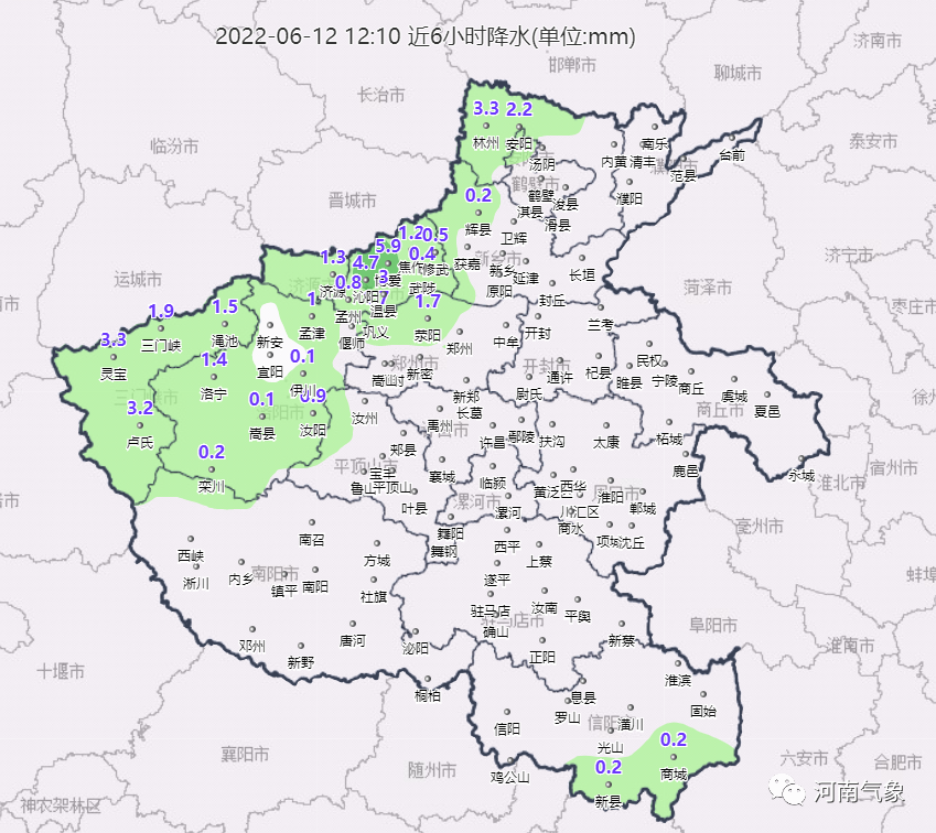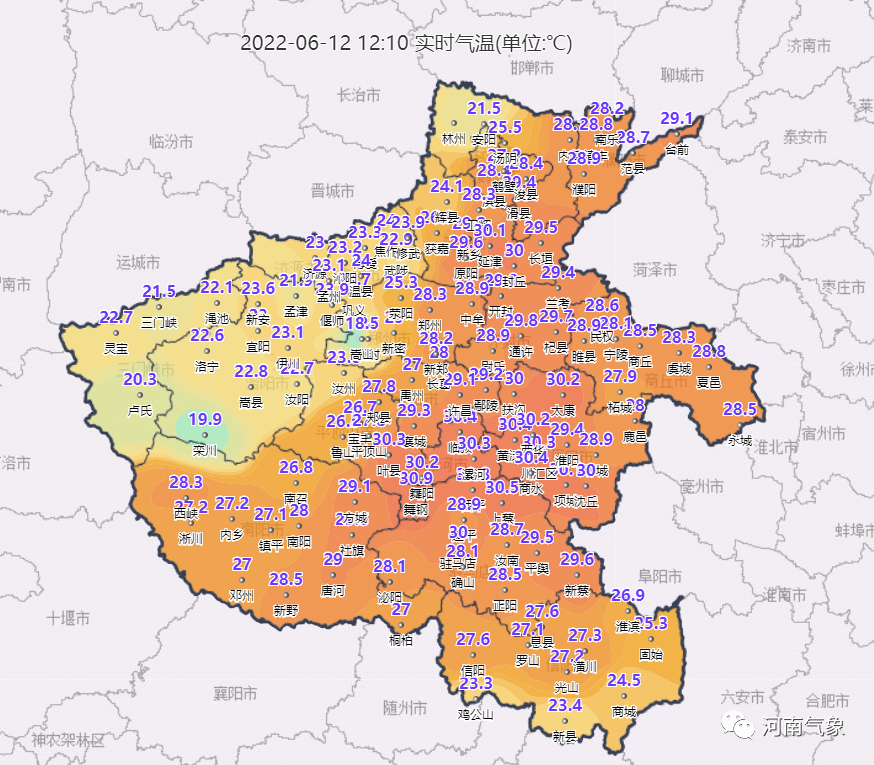 黄河以北和三门峡、洛阳、郑州、南阳、信阳阴天间多云,大部有阵雨、雷阵雨,局部有中雨并伴有短时强降水等强对流天气。