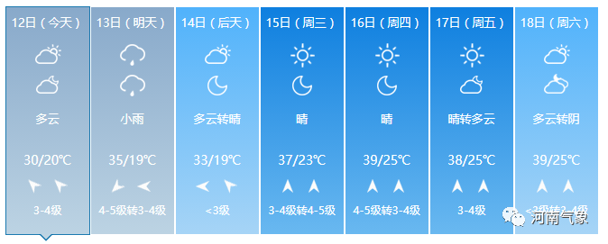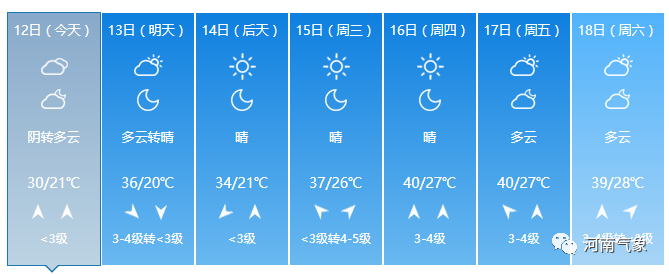 15到18日河南省大部持续高温天气,最高温度36到38度,北中部最高温度可达40到42度