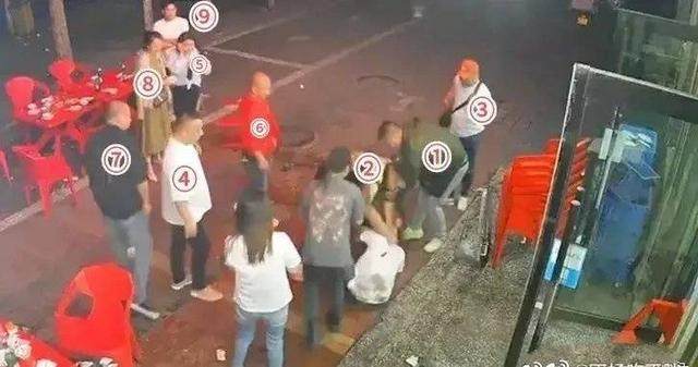 根据网上流出的监控视频,打人过程能听到现场声音。在长达3分钟的殴打过程中,施暴者有一男一女两人始终未上前参与。其中一名女性站在远处观望,身穿白衣的男子则站在原来就餐的桌子旁观看。另一名女子曾第一时间抄起椅子冲进店内,但未参与殴打,之后有劝阻举动。