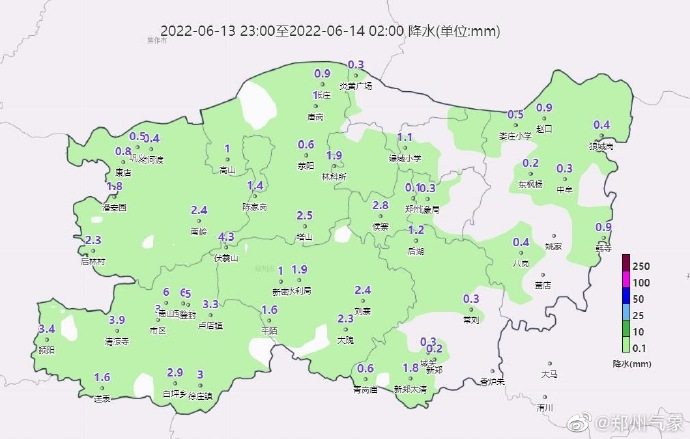 6月13日23时至14日0时,我市出现阵雨、雷阵雨,最大降水量出现在登封西燕村6.6毫米。极大风出现在登封送表22.2米/秒(9级)。