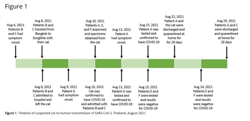 SARS-CoV-2疑似猫与人传播时间表,泰国,2021年8月。