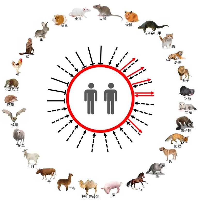 这项研究还排除了一些SARS-CoV-2的潜在中间宿主,包括啮齿目(豚鼠、大鼠、小鼠)、翼手目(马铁菊头蝠、中华菊头蝠、菲菊头蝠)、食虫目(西欧刺猬)、非洲兽总目(小马岛猬)、和鸡形目(鸡)。
