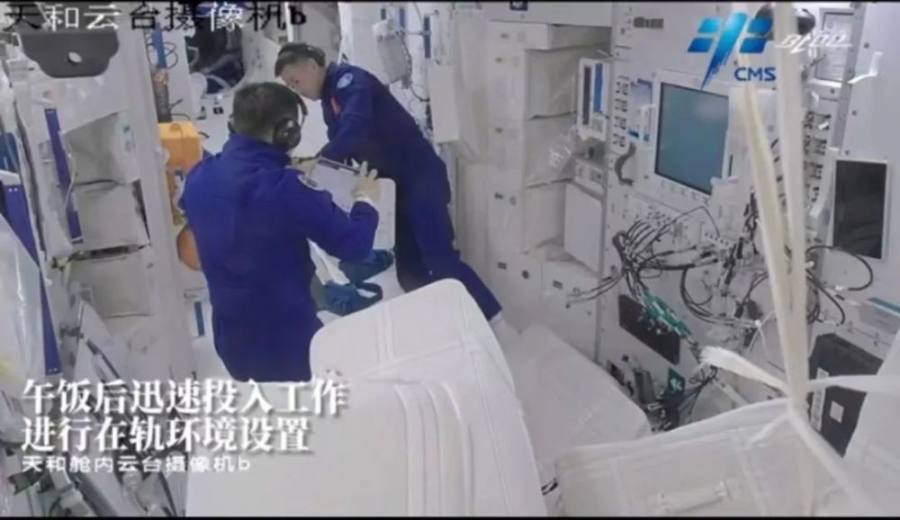 此外,航天员还要建立、调试天地通信链路,确保通信畅通。复核神舟飞船、货运飞船、天和核心舱的通信头戴、无线耳机、手机、平板电脑、固定台式机的各种话音、信息的链接和文件传输的通畅等。