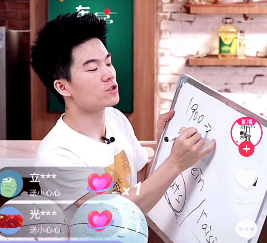 如今,每晚7点准时开播的“新东方式”的直播间是这样的:主播信手拈来在白色画板上写出英文单词,并做出延伸的讲解,不管是词性介绍、标准发音,还是英文造句,都让看客难以相信这是一个以农产品销售为主的带货直播间。