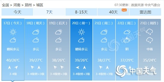 河南此轮高温天气超长待机,6月22日左右高温都将持续在线。比如郑州,未来一周高温将天天见,38℃以上热浪或连续5天在线;洛阳、商丘、开封等地高温也将持续6天左右。
