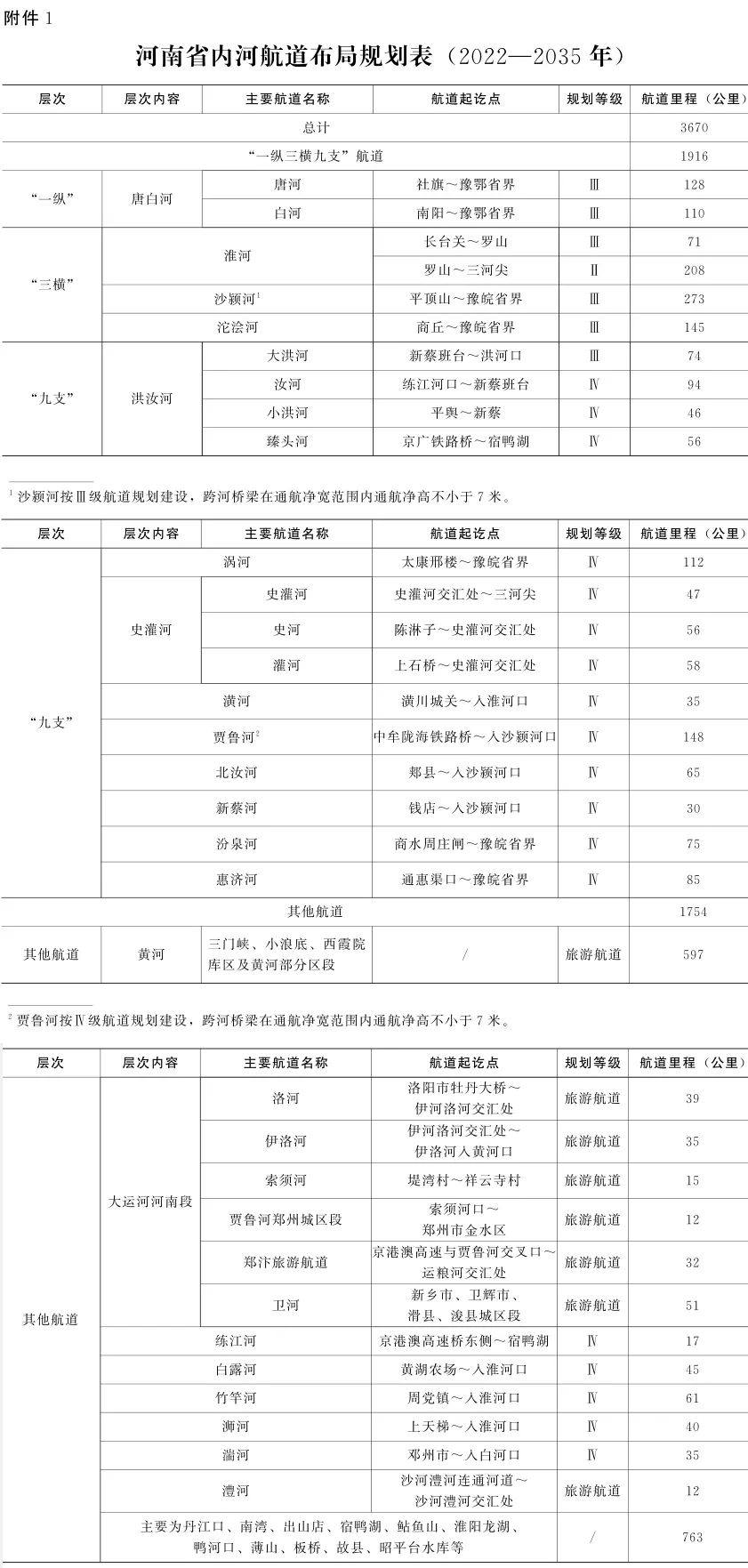 附件:1.河南省内河航道布局规划表(2022—2035年)