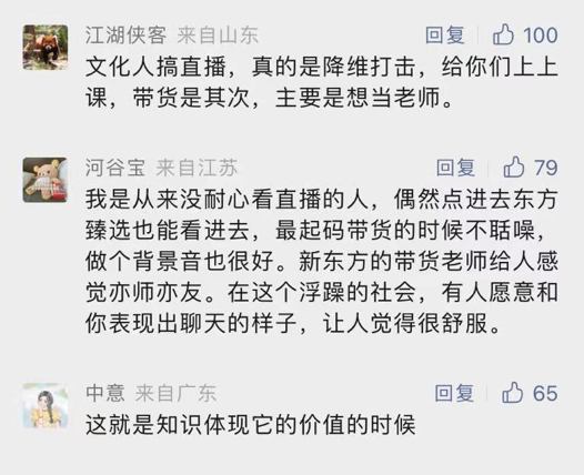 也有网友感叹:“文化人搞直播,真是降维打击,给你上上课,带货是其次,主要是想当老师。”
