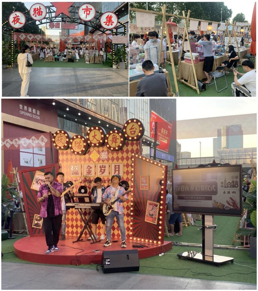 得益于第三届“醉美·夜郑州”消费季系列活动,烟火气“超燃”的郑州回来了!夜幕降临,新田360广场上的“夜猫市集”如约开市,琳琅满目的商品和乖萌可爱的宠物吸引大批年轻人挑选购买,市集另一端的“夜猫大舞台”上,一支乐队的倾情演唱更是为其增色不少。