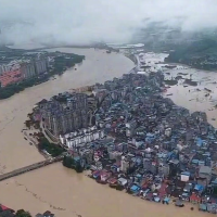 松溪出现历史最大洪水,穿城而过的松溪水位升至193.98米,比当地历史最高水位还高出1.59米。