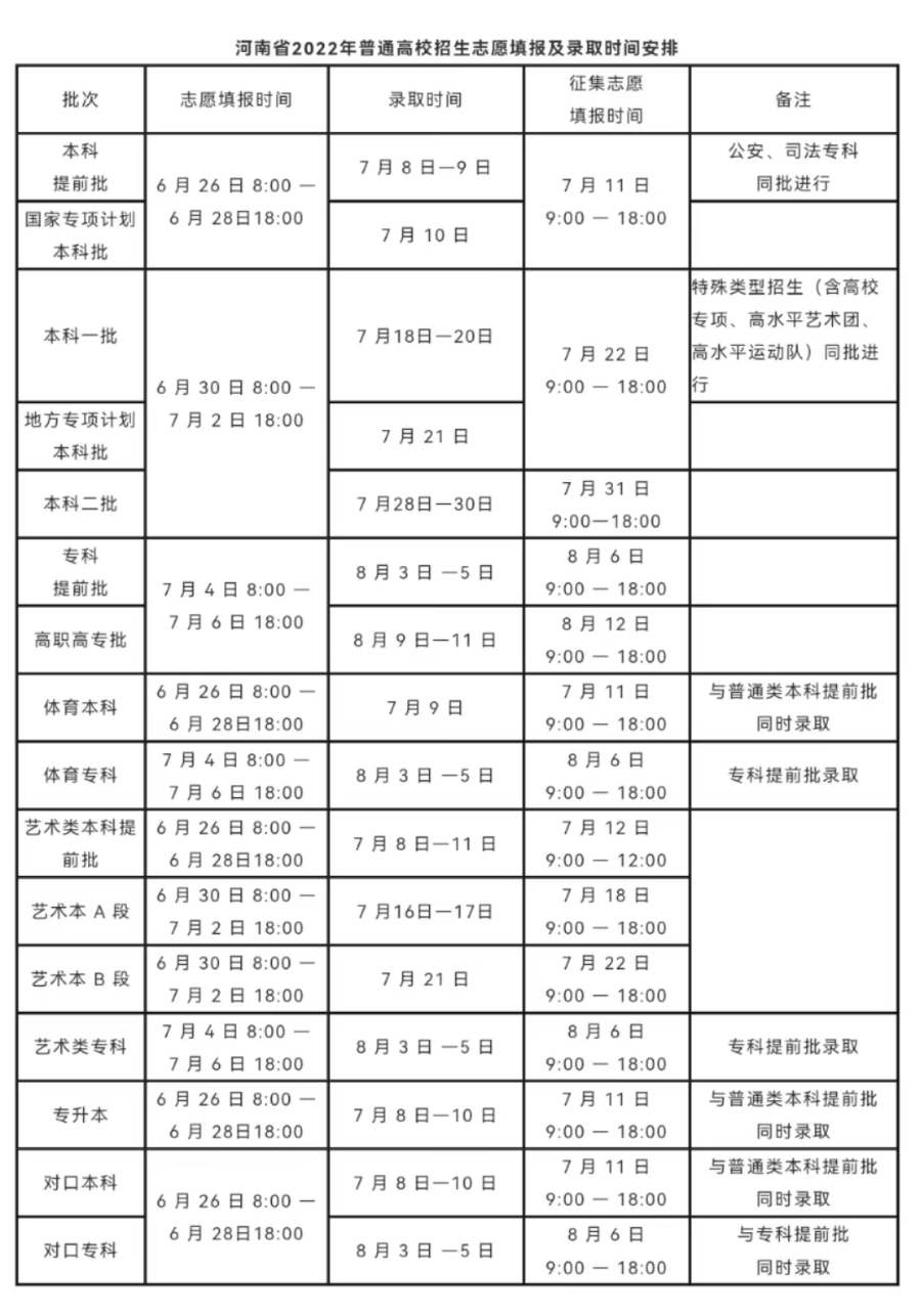 6月19日,《河南省2022年普通高校招生考生指南》,录取时间表同时出炉。