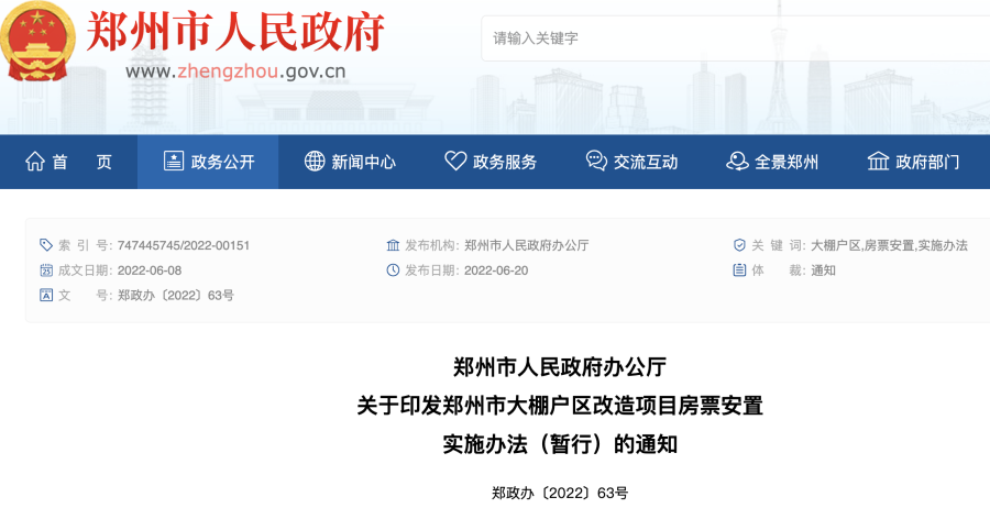 附:《郑州市大棚户区改造项目房票安置实施办法(暂行)》原文详情点此查看>>>