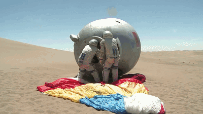 航天员改装降落伞的引导伞来遮阴挡风沙(资料图)