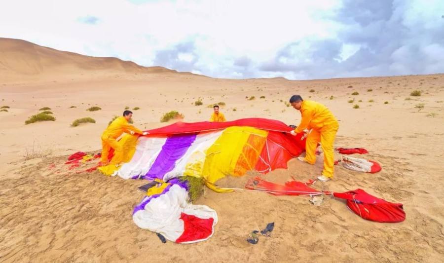 在被誉为“沙漠珠穆朗玛峰”的巴丹吉林沙漠深处,身穿舱内航天服的航天员以3人乘组形式,需在48小时内模拟经历从返回舱着陆后航天员自主出舱、报告着陆位置、等待救援并利用现有物资进行自救,直到被成功搜救的全过程。
