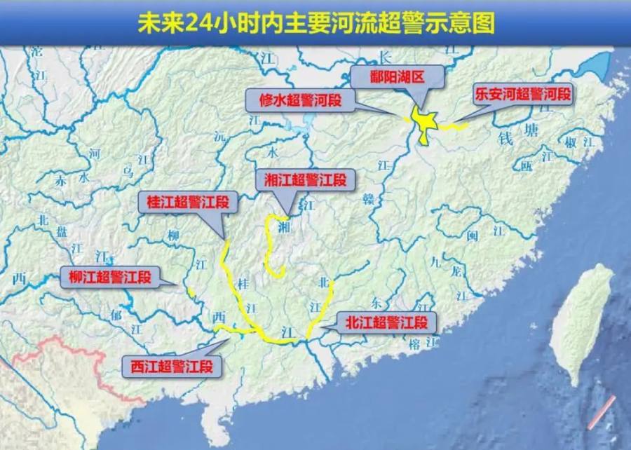 预计未来24小时,西江中下游干流,广西柳江、桂江,广东北江等水位维持超警。