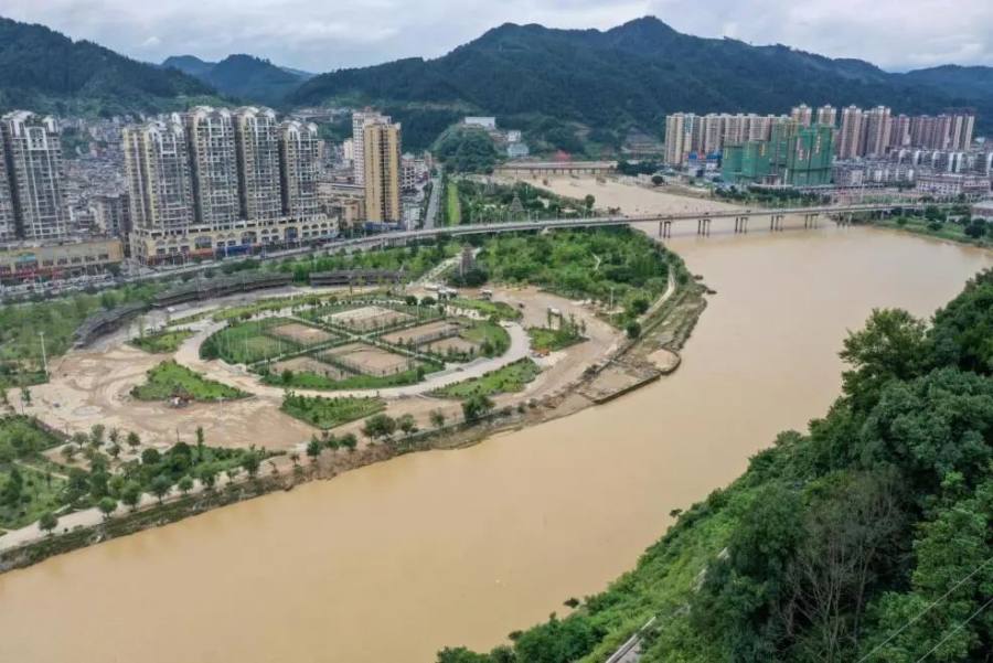▲6月21日拍摄的雨后贵州省黔东南苗族侗族自治州榕江县县城。(新华社记者 欧东衢/摄)
