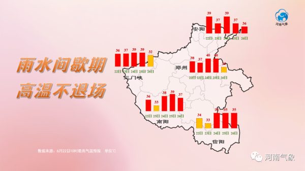 气象专家表示,此轮河南高温天气具有发生范围广、持续时间长、强度大的特点。6月22日前全省大部地区高温天气持续,23日受降水天气影响,高温有缓解,但24日至25日高温将再次发展,届时河南淮河以北仍会出现37℃以上的高温天气。