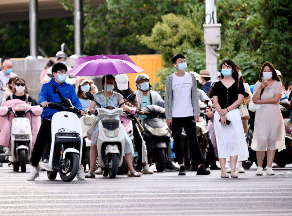 6月21日,河南高温天气持续,郑州市民头顶烈日出行。新华社记者 杨金鑫 摄