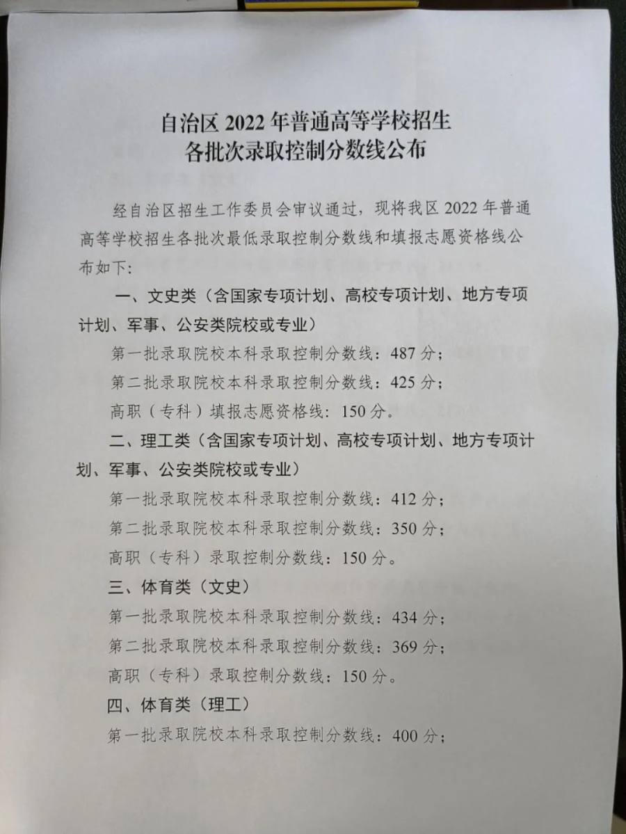 本科第一批:538分;本科第二批:466分;专科批:150分。