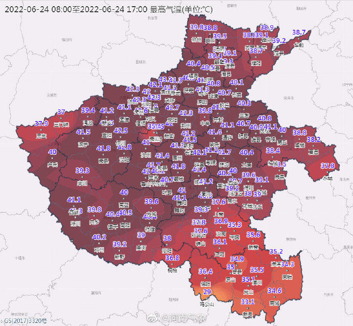 另据河南气象消息,今天我省半数以上的气象站点最高气温达到40℃。