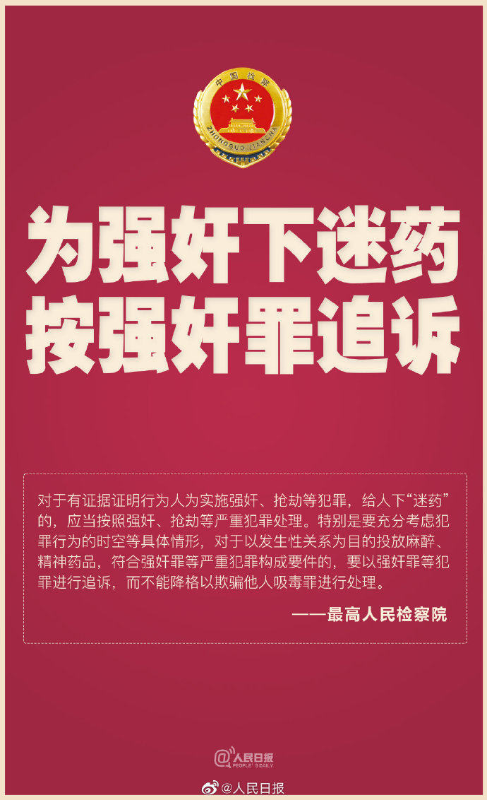 最高检:为强奸给人下迷药按强奸罪追诉,不能降格为欺骗他人吸毒罪