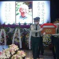 6月26日,众多文艺界人士、歌迷与生前好友在北京八宝山殡仪馆东礼堂为著名词作家乔羽送行。