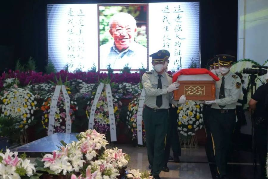告别仪式现场循环播放着《我的祖国》,“一条大河波浪宽,风吹稻花香两岸……”送别的队伍缓缓行进在这“大河”里。
