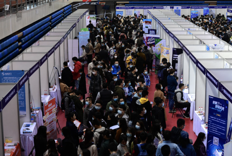 2021届毕业生春季就业双向选择洽谈会。新华社记者杨青摄于2021年3月25日