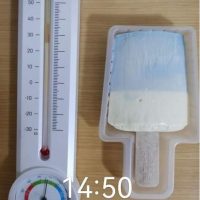 一根牛奶雪糕放在室温下一个小时四十分钟后,早已全部化开,用冰棒棍很容易推开。