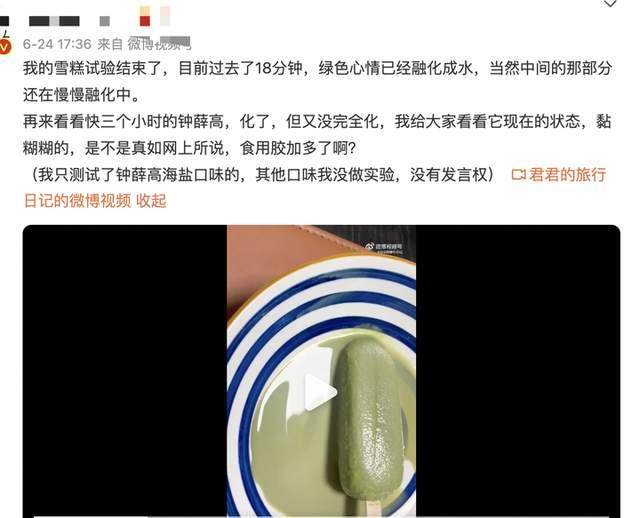 钟薛高31℃室温下放置1小时不化?客服回应引网友质疑