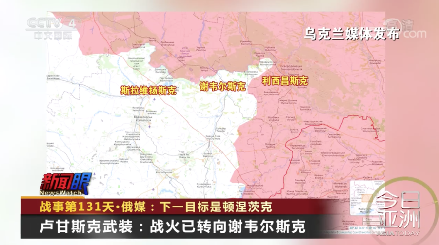 利西昌斯克的战斗告一段落后,卢甘斯克武装力量3日表示,争夺顿涅茨克的谢韦尔斯克的战斗已经打响。谢韦尔斯克位于利西昌斯克的西部,距离利西昌斯克约30公里。另外,乌克兰媒体3日报道称,顿涅茨克的斯拉维扬斯克当天遭俄军大规模炮击。斯拉维扬斯克市市长表示,这是近一段时期以来该市遭到的最大规模的炮击。