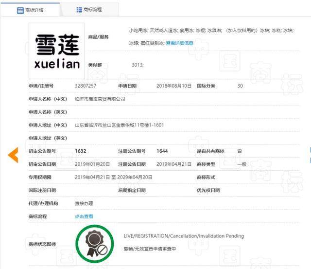 天眼查显示,淄博市临淄雪檬冷饮厂成立于1996年9月,投资人为谢锦亮,经营范围包括冷冻饮品的生产销售。该公司“雪檬雪莲”商标正在申请中,国际分类为30类-方便食品。