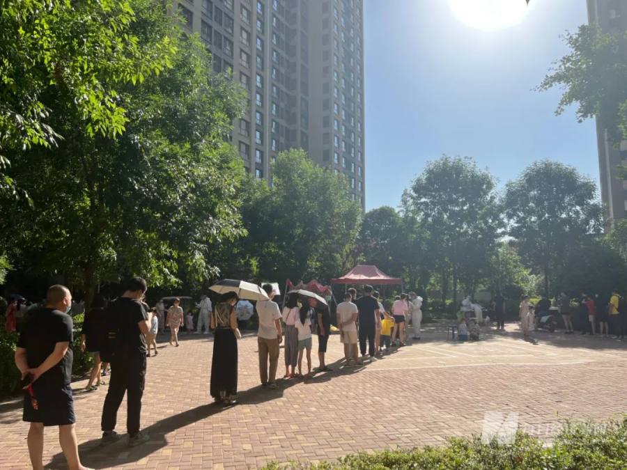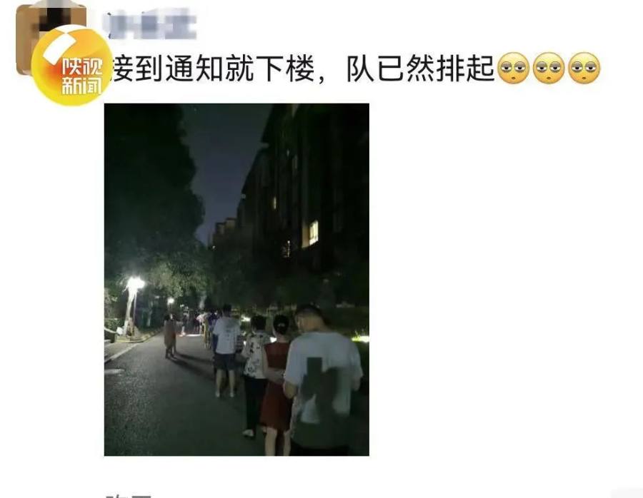 据陕西广播电视台,在长安区郭杜街道某居民小区,通知居民零点开始全员核酸,早上六点结束,要求不漏一户不落一人。零点刚过,居民已开始有序排队进行核酸采样。