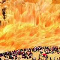 再现壮美黄色瀑布群