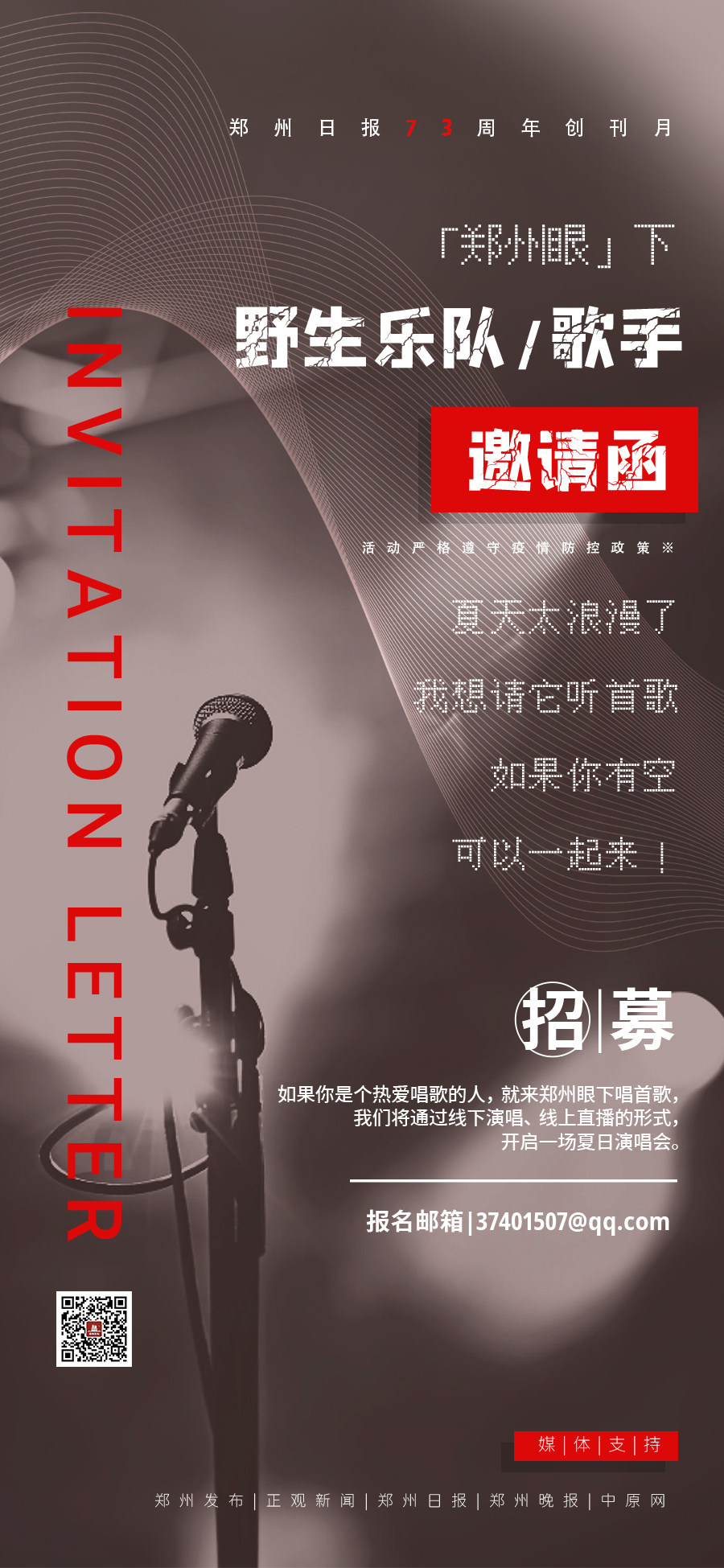 “郑州眼”下,野生乐队(歌手)邀请函 ——开启一场属于你的素人演唱会吧!
