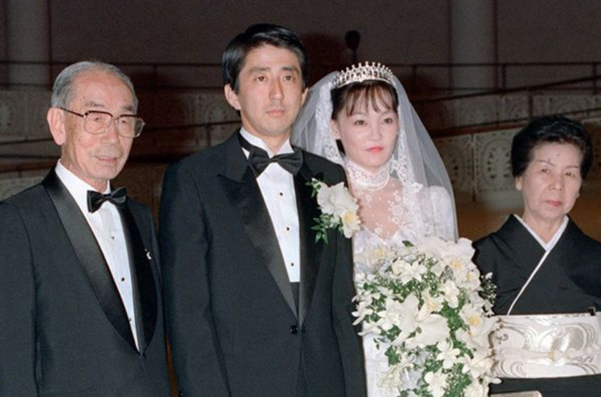 安倍的婚姻也与政治密不可分。1987年,他与日本食品业巨头森永制果社长松崎昭雄的长女昭惠结婚,而牵线人正是日本前首相福田赳夫夫妇。