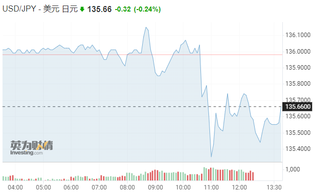 在该突发事件传出后,日经225指数跳水翻绿,抹去日前涨幅,外汇市场也随之受到影响。日元兑美元上涨了近半个百分点,日元升至135.33。