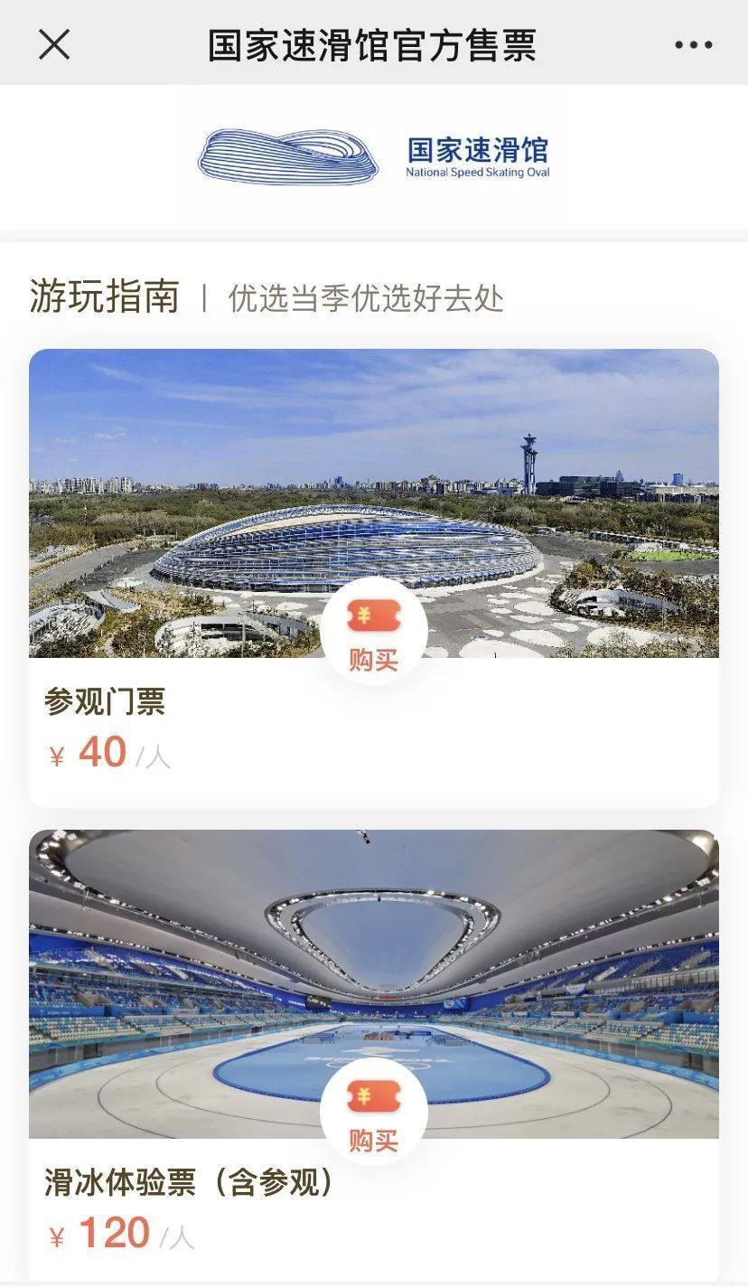 来这里参观可以通过微信关注“国家速滑馆”公众号进行票务预约。参观门票40元每人次。参观加上冰的套票120元每人次。根据游客需求,也可以现场购买80元每人次的滑冰体验票,其中包含了90分钟的滑冰体验和一套冰鞋一套护具。