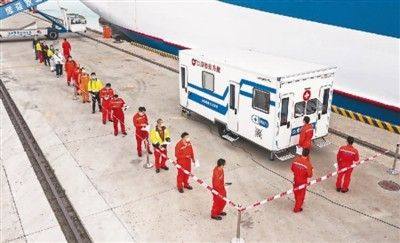 11月1日,在山东省荣成市石岛新港码头,当地海关部门采用新型口岸检疫方舱,对停靠码头需要下船的船员进行体温检测、流行病学调查以及核酸样本采集等工作。李信君摄(人民视觉)