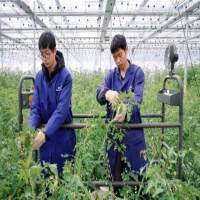 2021年3月4日,浙江省寿昌县农业精品生态园的技术员在机器协助下为农作物绑蔓。