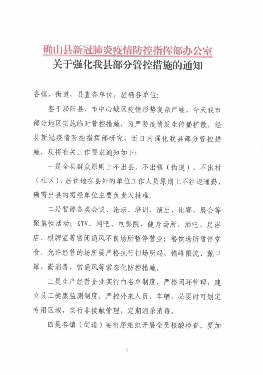 汝南县关于实施全域静态管控措施的通告