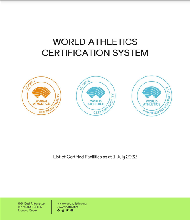 它是全球209个世界田联认证的一级场地之一