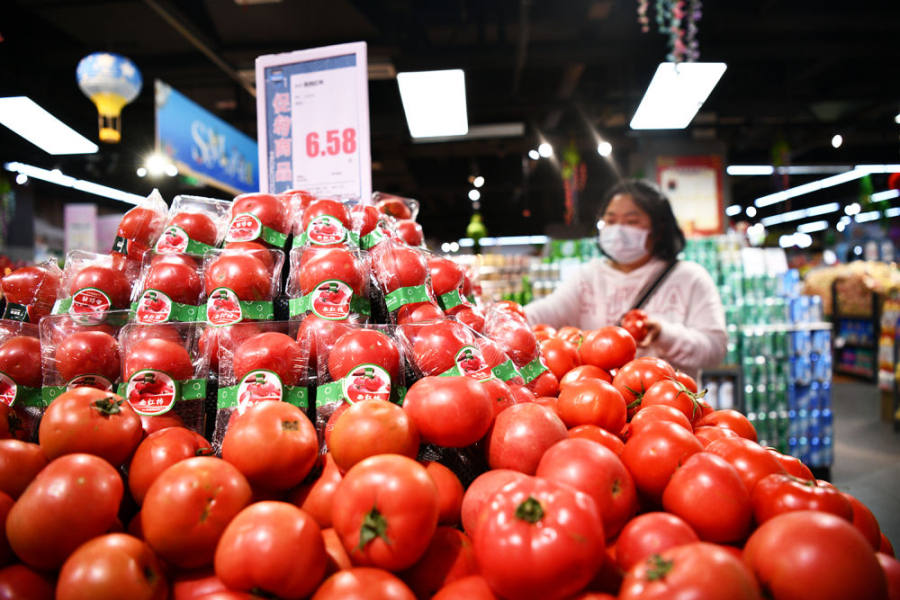 5月16日,消费者在贵州省遵义市余庆县一家超市选购蔬菜。(新华社发,王永娟摄)