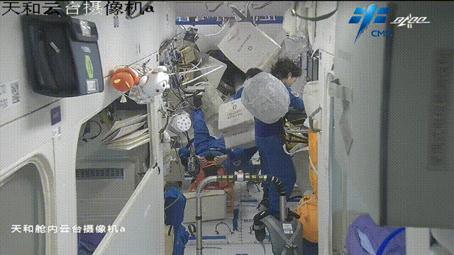 二氧化碳还原装置在轨安装与测试。图片来源:中国载人航天