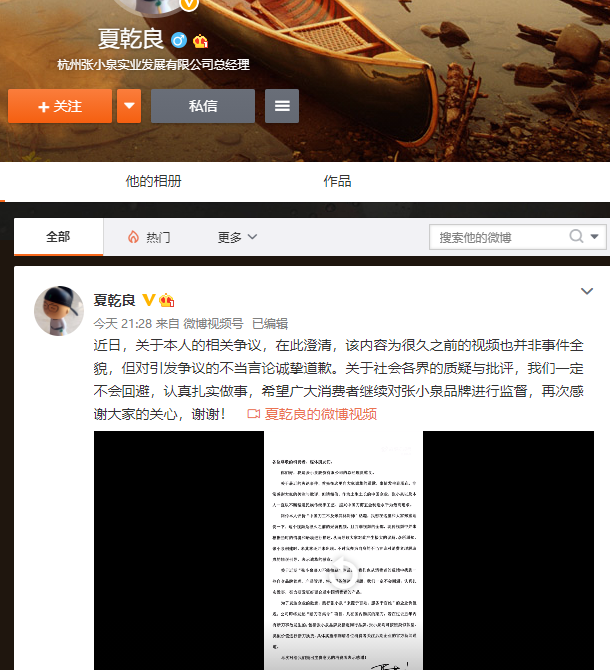 18日晚间,张小泉总经理夏乾良在其个人微博回应网络热点:网传视频是很久以前的视频,且并非视频全部,现传视频中并未根据当时的情境和语境进行描述,从而导致大家对此产生极大的误解。不过,他亦为自身的不当言论对消费者理解造成的错误引导,表示诚挚的歉意。