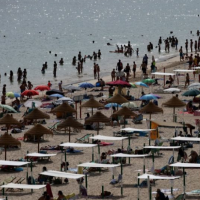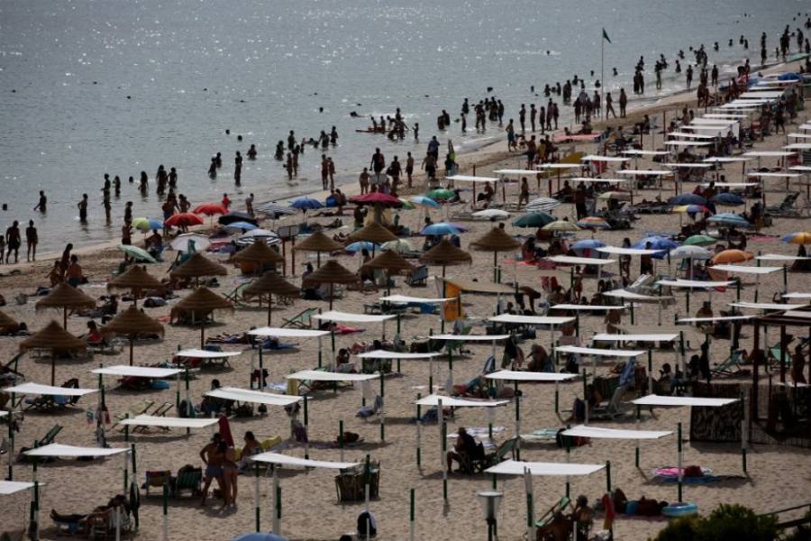 7月10日,人们在葡萄牙塞辛布拉海边游乐、休息。图源:新华社