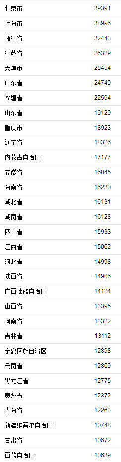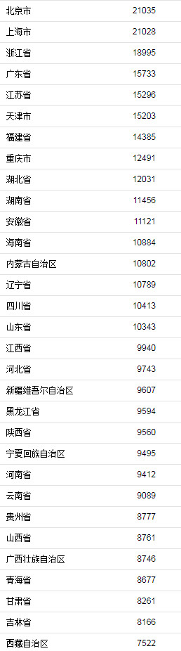 9省份人均可支配收入超全国水平